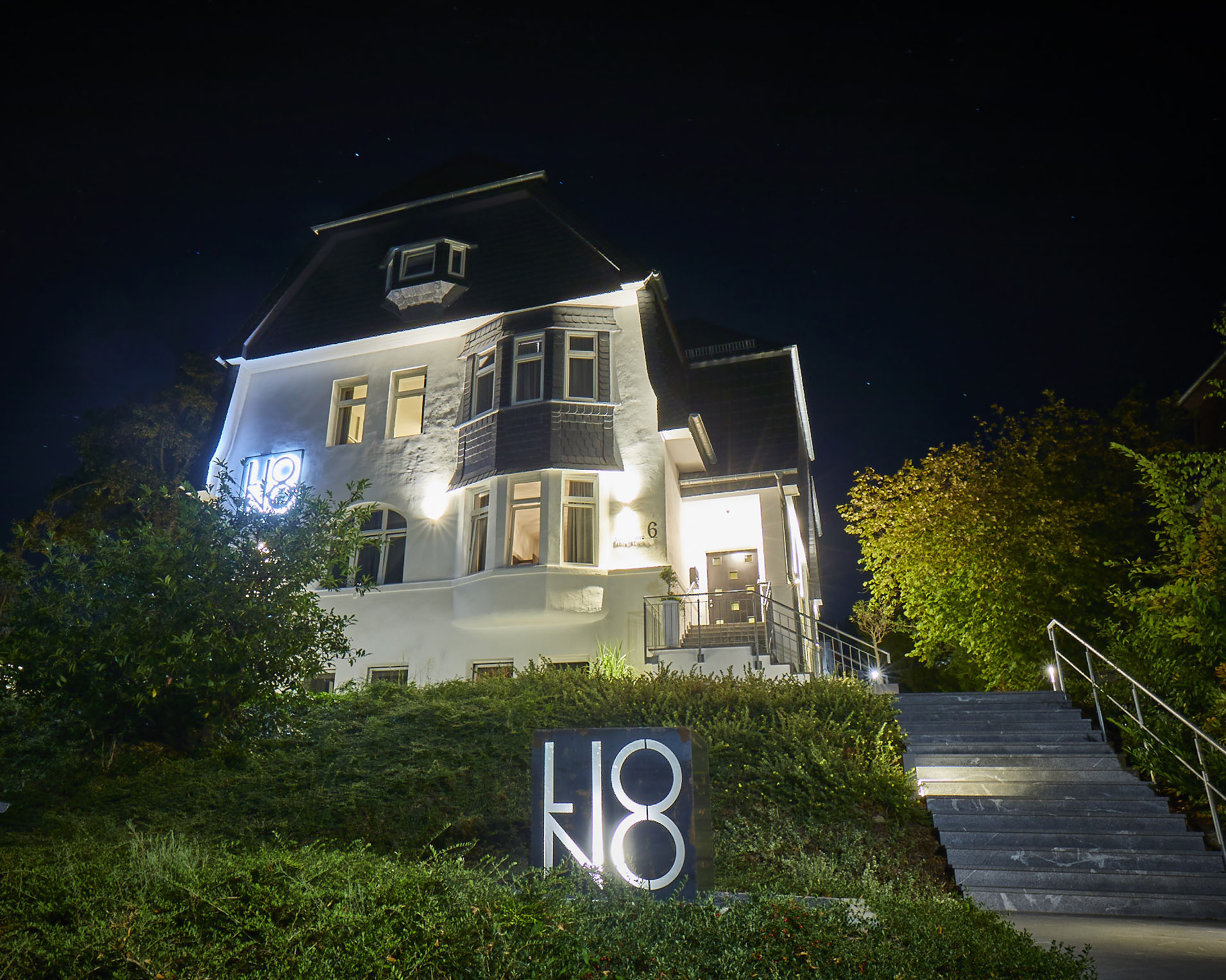 Hotel Liono von außen bei Nacht