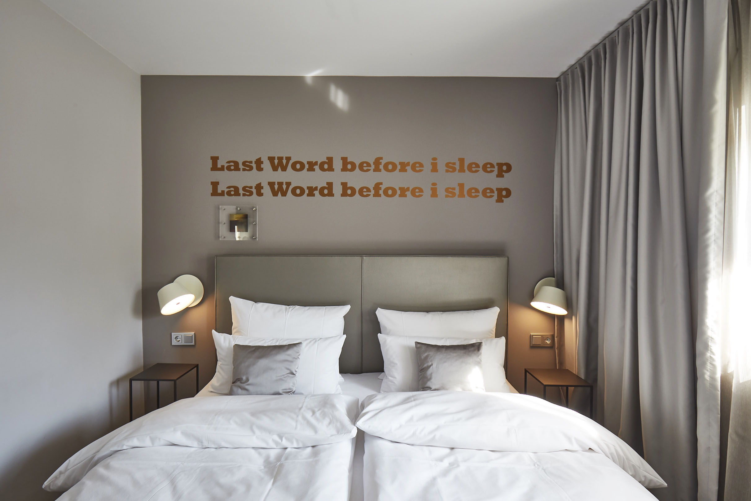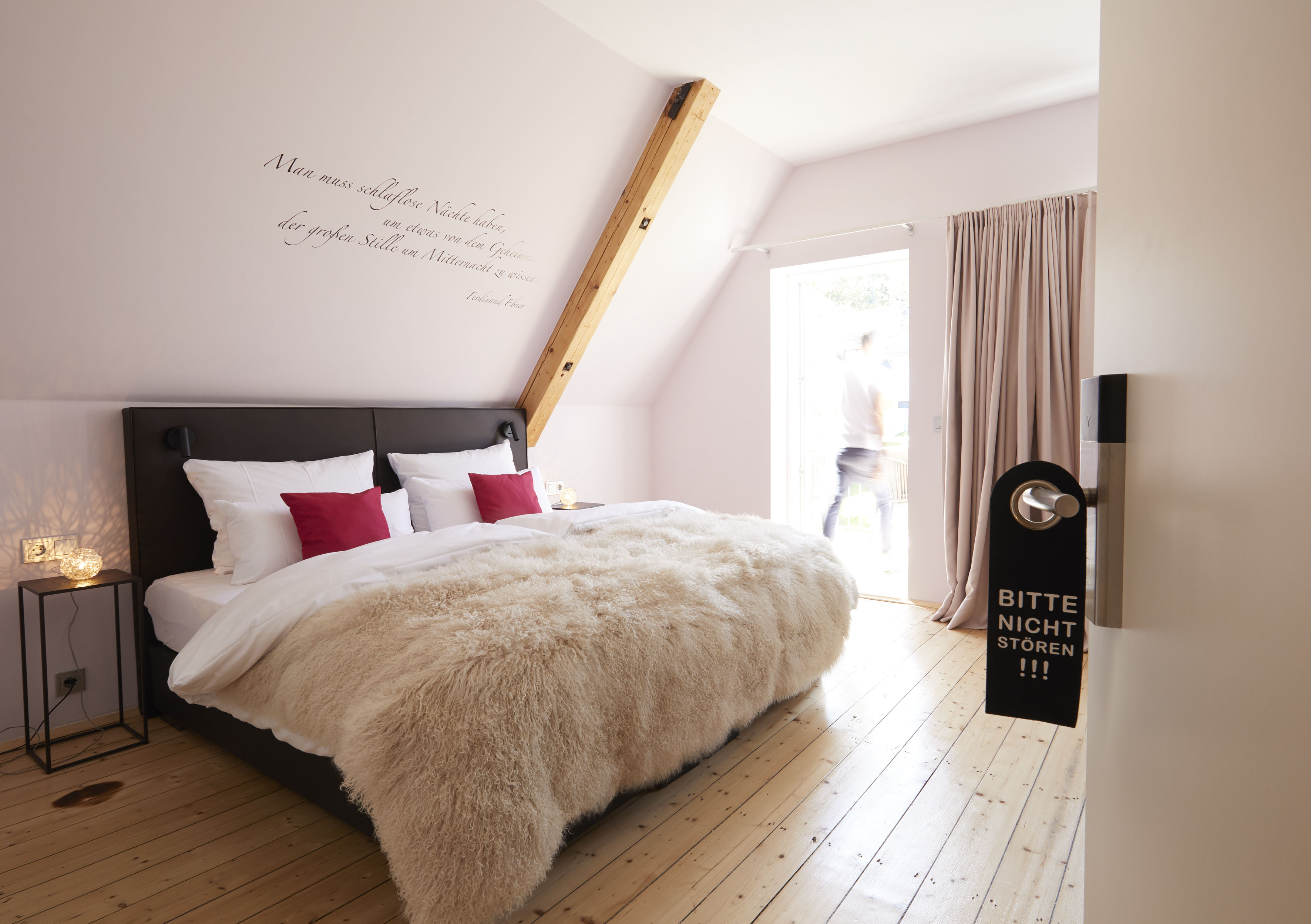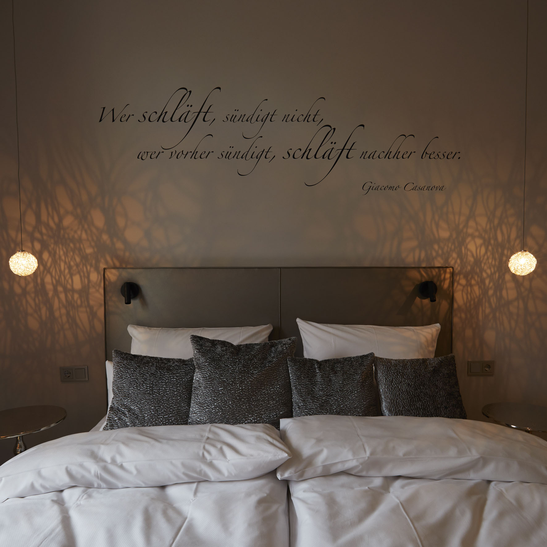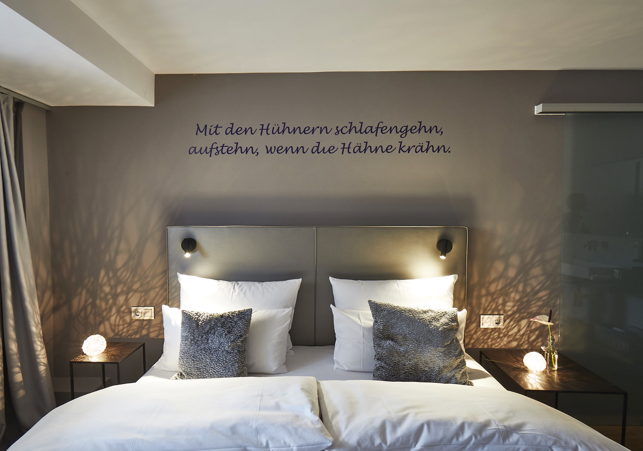 Hotel Liono Spruch über Bett